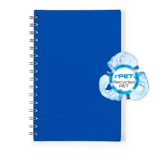 Notatnik A5 (100 kartek w linie), twarda okładka wykonana z RPET, kartki w 100% z recyklingu z mikroperforacją, spiralne bindowanie